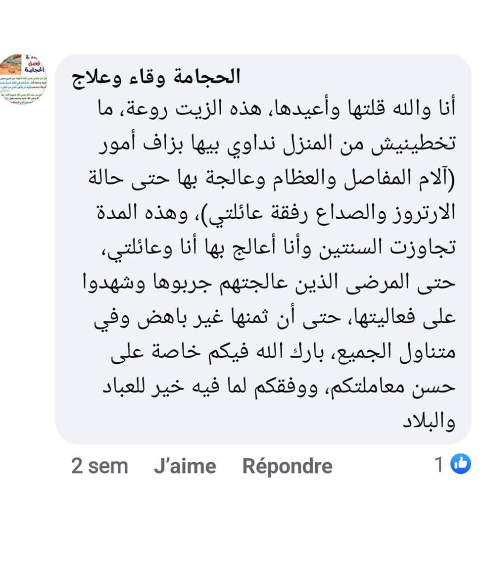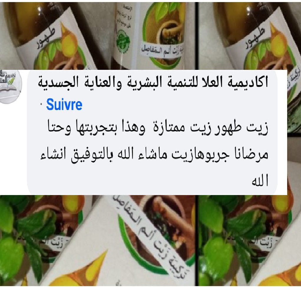 زيت طهور مجرب وفعال بشهادة أطباء وحجامين مختصين في العظام والعلاجات الطبيعية، وبشهادة آلاف المرضى لريحهم من سطر